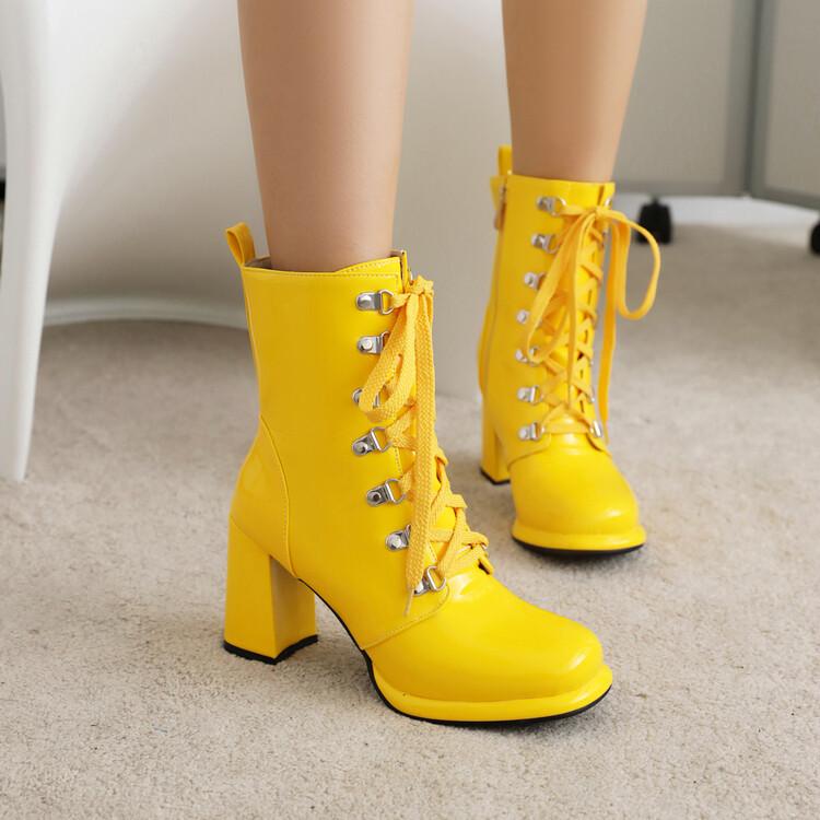 Ярко-желтые лакированные ботильоны для женщин на шнуровке, белые ботильоны на высоком каблуке, женские туфли большого размера 48 — купить товар онлайн с бесплатной доставкой до всему миру!