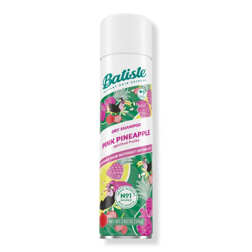 Наслаждайтесь фруктовым и беззаботным ароматом с оттенками гуавы, жасмина и сандалового дерева с сухим шампунем Batiste Pink Pineapple.