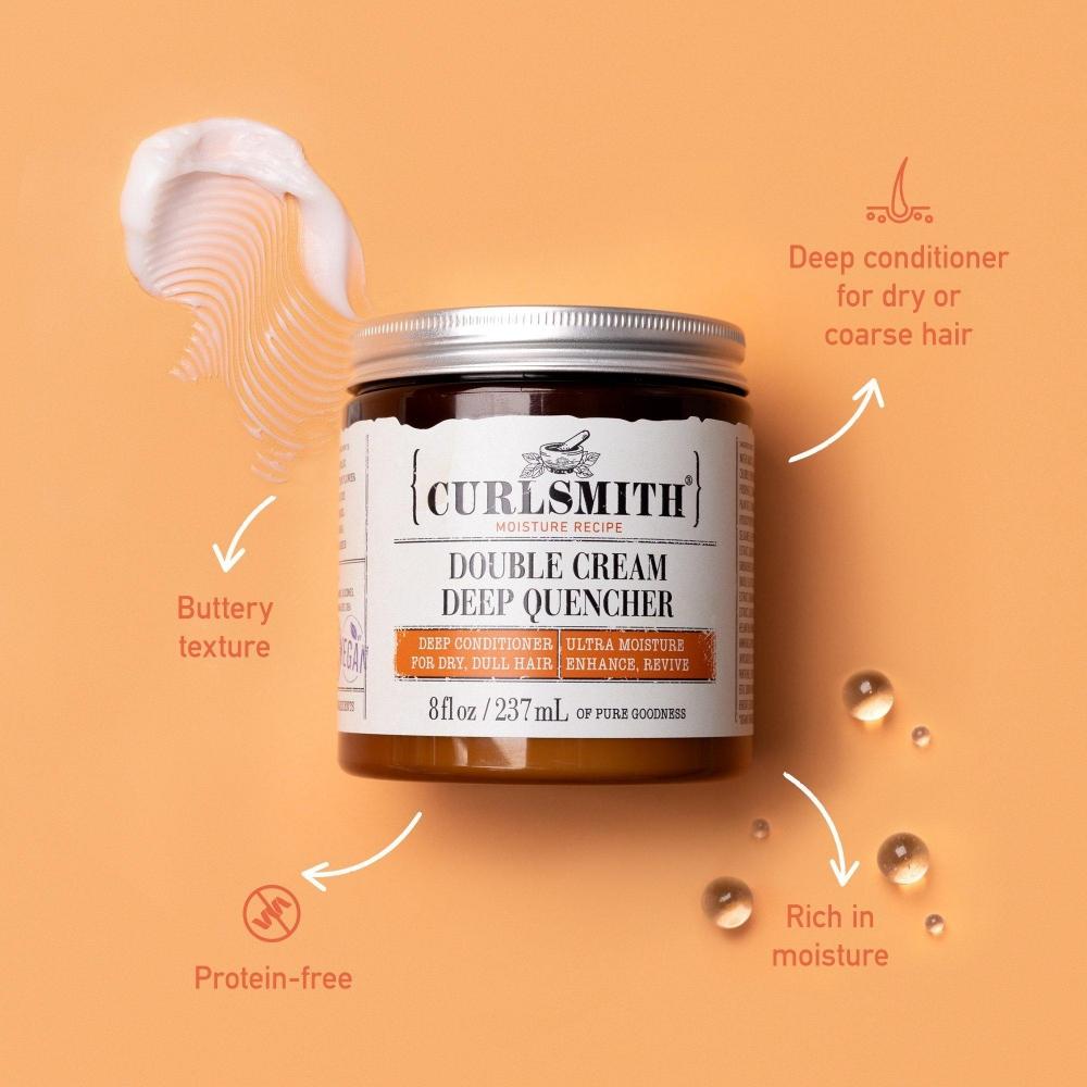 Curlsmith Double Cream Deep Quencher — это интенсивное средство глубокого кондиционирования, которое питает и увлажняет даже самые сухие типы волос.