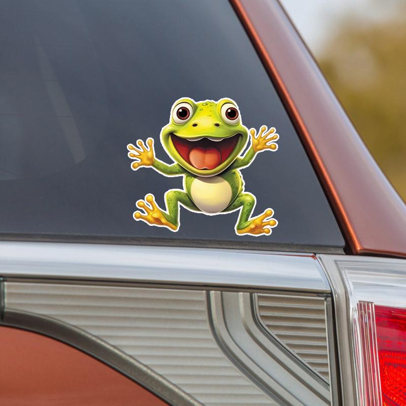 JT124#15x14см Очаровательная виниловая наклейка на автомобиль с изображением лягушки - яркая и водонепроницаемая наклейка для автомобилей и мотоциклов - прочная, привлекающая внимание конструкция