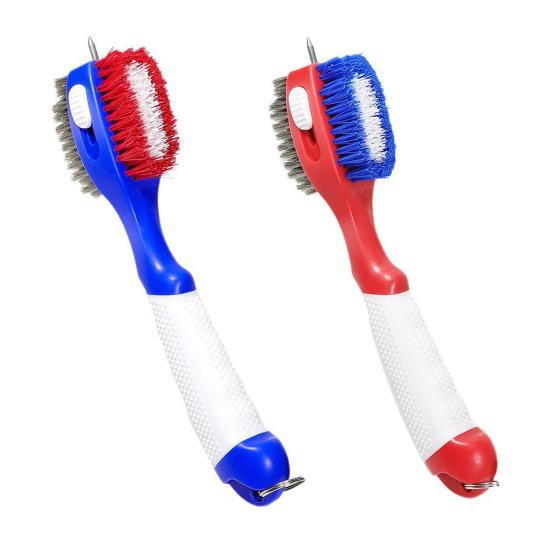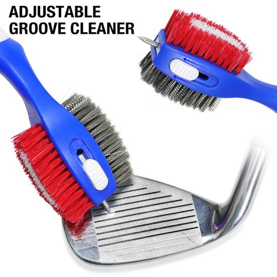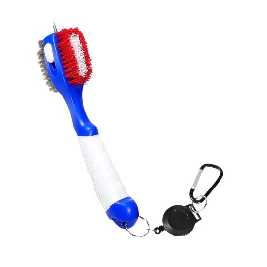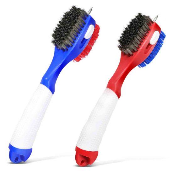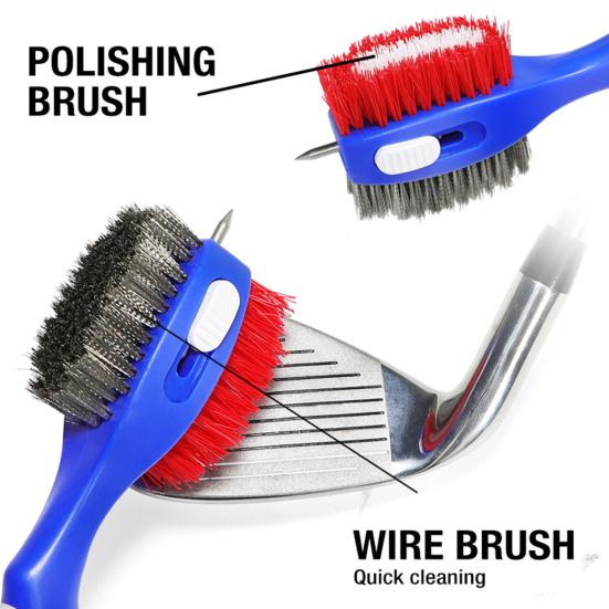 Устойчивое строительство: Изготовленная из высококачественного пластика, нейлона и стали, эта щетка для клюшек для гольфа обеспечивает длительный срок службы.. Прочные щетинки сохраняют форму, обеспечивая эффективную очистку без изгибов.