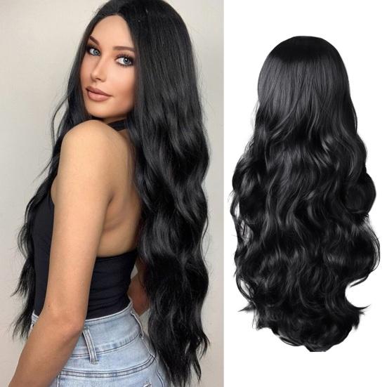 Женский длинный вьющийся парик, средняя часть, естественный вид, термостойкое высокотемпературное волокно, черные, красные, белые волнистые синтетические волосы