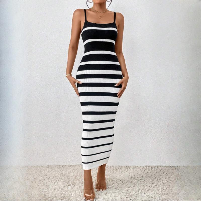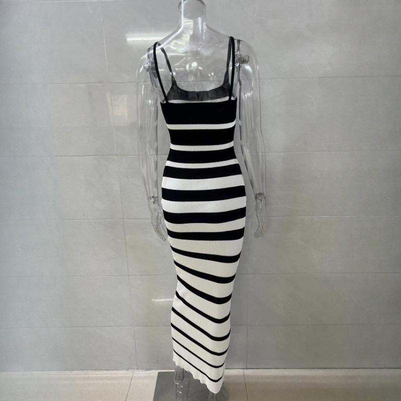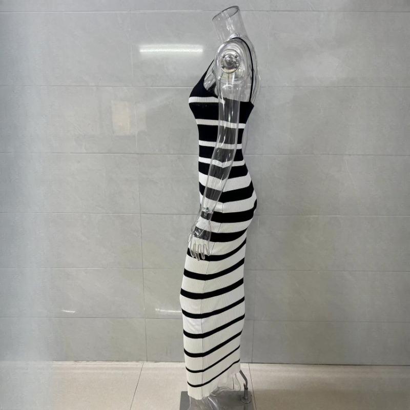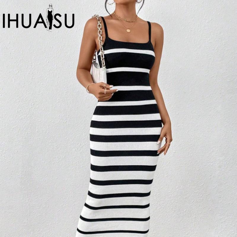 IHUASU Женские сексуальные платья-халатки в полоску с бретельками через шею, длинные платья