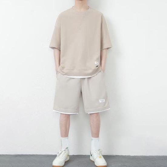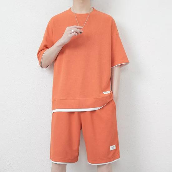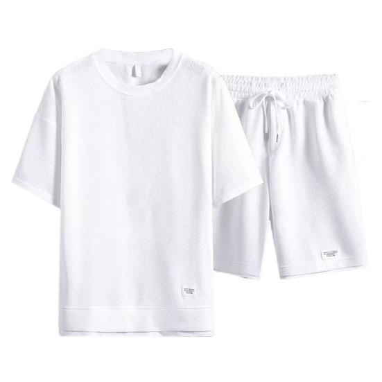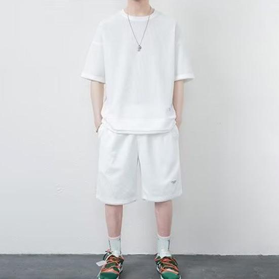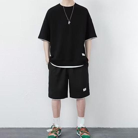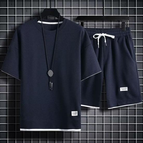 Стиль: Создайте повседневный и энергичный образ в этом мужском спортивном костюме с топом с короткими рукавами и шортами на эластичной талии.. Этот комплект излучает летнюю атмосферу благодаря своему модному дизайну и идеально подходит для тех, кто ищет непринужденный, но модный наряд.