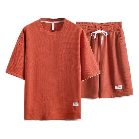 Материал: Этот модный комплект из футболки и шорт изготовлен из высококачественной полиэфирной ткани, обеспечивающей долговечность и комфорт для повседневного ношения.. Рыхлая вафельная текстура придает ансамблю стильный вид.