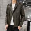 Мужское кожаное пальто осень-зима корейский стиль модная тонкая и красивая зеленая мотоциклетная куртка с отворотом кожаная куртка для мужчин