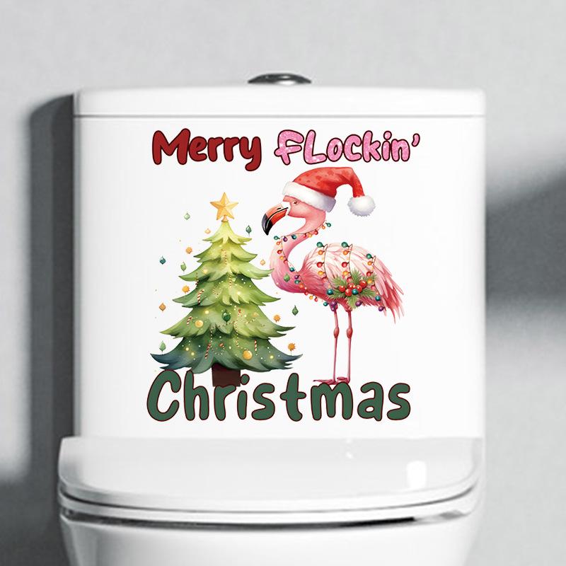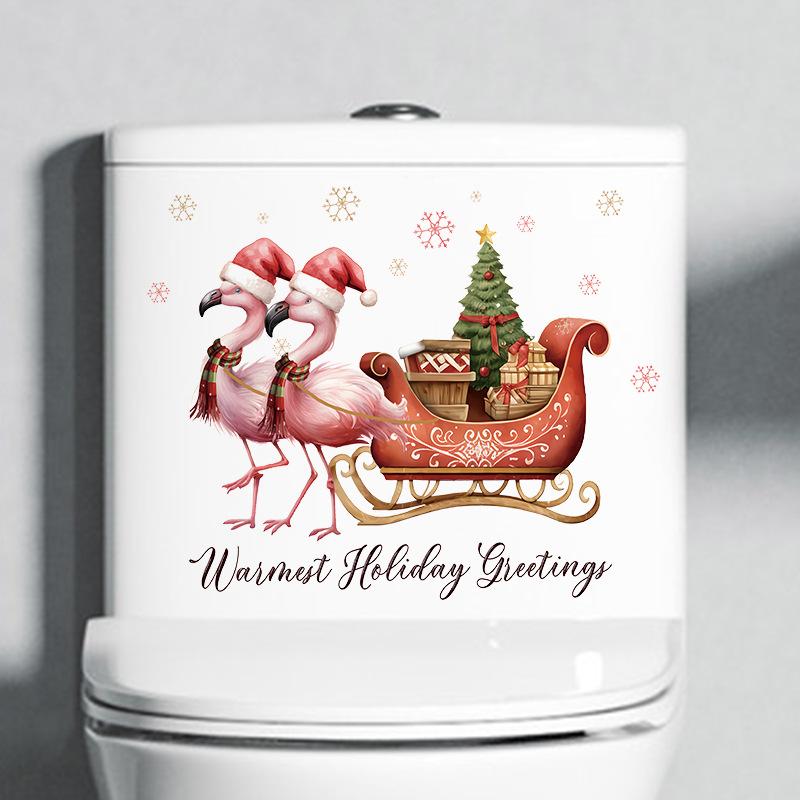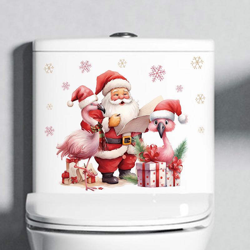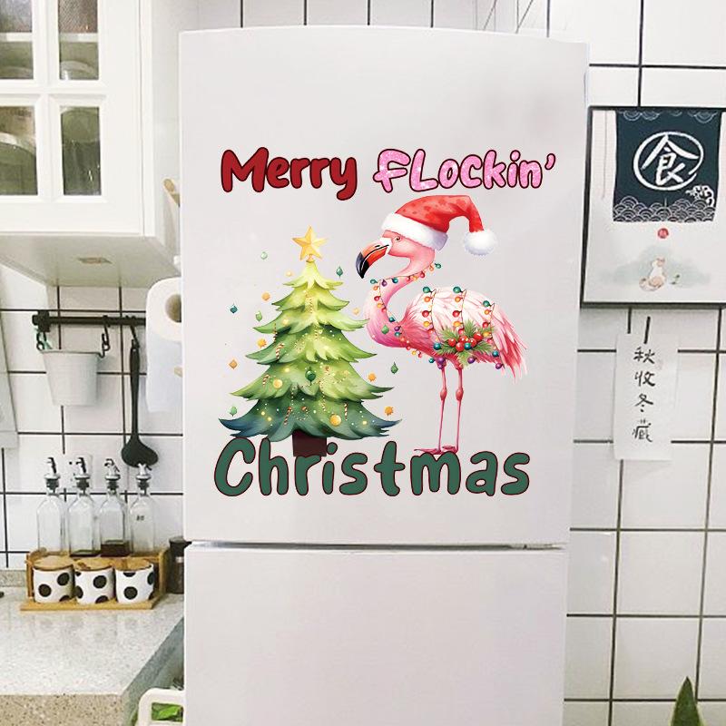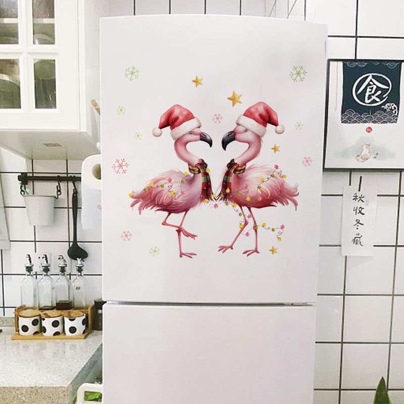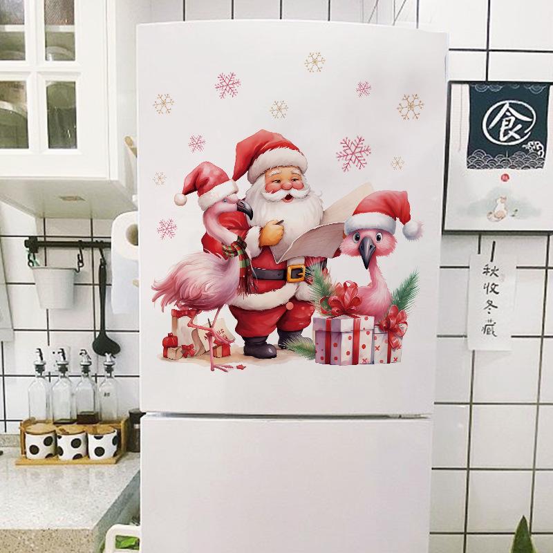 Мультфильм Санта-Клаус Фламинго Наклейка на стену Веселое рождественское украшение Фреска Фестиваль Домашний декор Самоклеящиеся новогодние наклейки