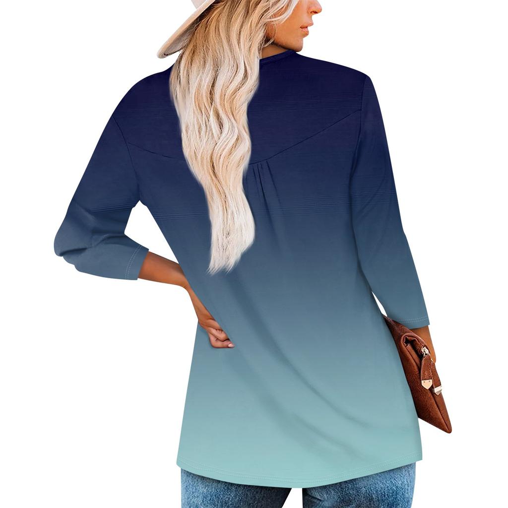 Летняя женская мода, повседневная блузка с круглым вырезом и рукавами 3/4, пуловер с принтом