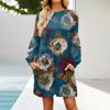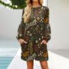 Модное женское платье трапециевидной формы с длинным рукавом. Осенний повседневный пуловер с круглым вырезом. Свободное платье с карманами.