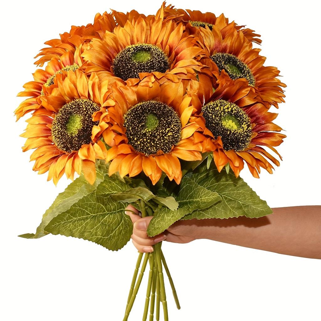 9 шт. искусственных подсолнухов в винтажном стиле - реалистичные искусственные цветы с длинными стеблями для дома, свадьбы, сада, декора вечеринок на открытом воздухе - шелковые цветы оптом