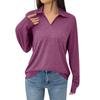 Женская модная однотонная свободная футболка с лацканами и длинными рукавами и карманами