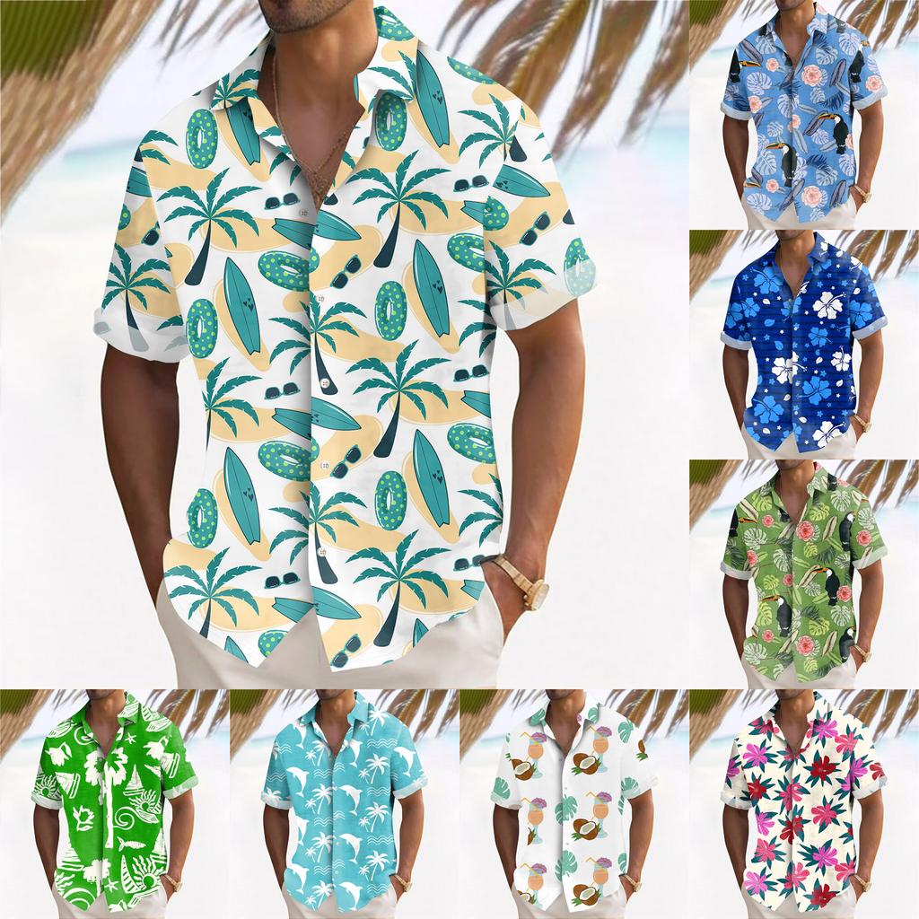 Гавайская рубашка для мужчин, мужские винтажные рубашки для боулинга на пуговицах, летняя пляжная рубашка с коротким рукавом