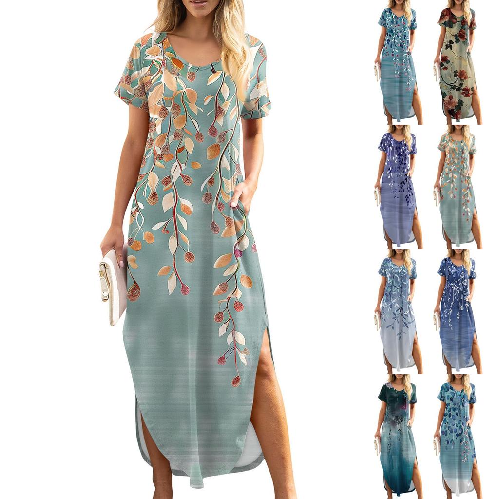 Женские летние повседневные свободные пляжные макси длинные платья с V-образным вырезом и короткими рукавами, модные наряды — купить товар онлайн с бесплатной доставкой до всему миру!