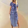 Женские летние повседневные свободные пляжные макси длинные платья с V-образным вырезом и короткими рукавами, модные наряды
