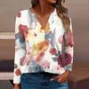 Женская футболка Футболка с принтом и длинным рукавом Повседневные выходные Мода Базовый топ с V-образным вырезом Обычный топ