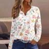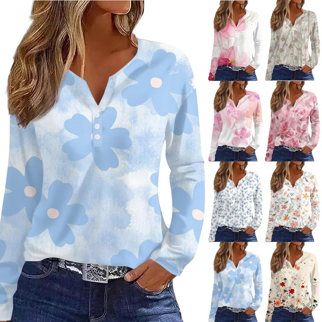 Женская модная повседневная футболка с v-образным вырезом и длинным рукавом с принтом, топ на пуговицах — купить товар онлайн с бесплатной доставкой до всему миру!