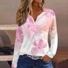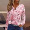 Женская модная повседневная футболка с v-образным вырезом и длинным рукавом с принтом, топ на пуговицах