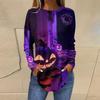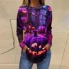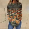 Женская свободная футболка с длинным рукавом с круглым вырезом и принтом, верхний пуловер