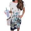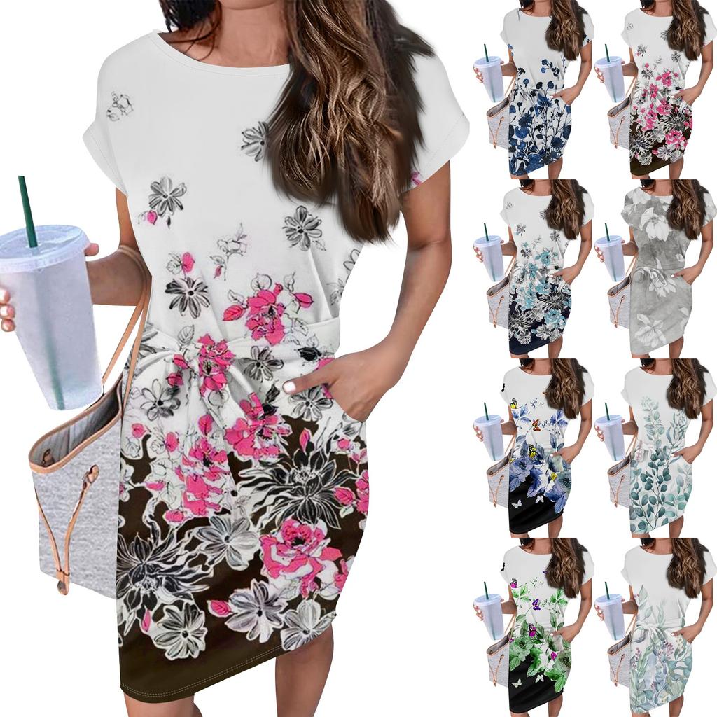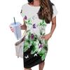 Женские повседневные модные сексуальные платья-туники с круглым вырезом и коротким рукавом с ботаническим цветочным принтом