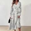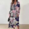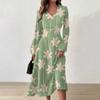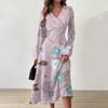 Женское осеннее и зимнее повседневное модное длинное платье с v-образным вырезом и длинным рукавом с цветочным принтом