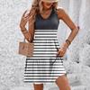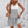 Женское летнее модное повседневное плиссированное платье без рукавов с v-образным вырезом и полосатым принтом