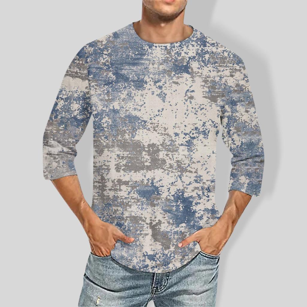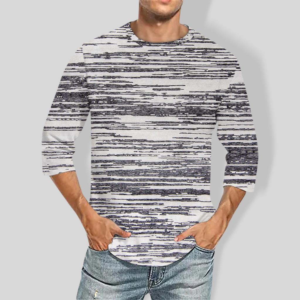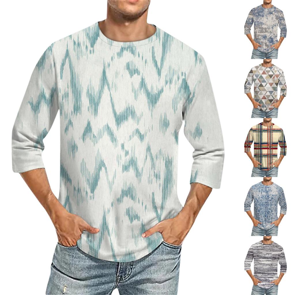 Мужская однотонная футболка с круглым вырезом и рукавами три четверти