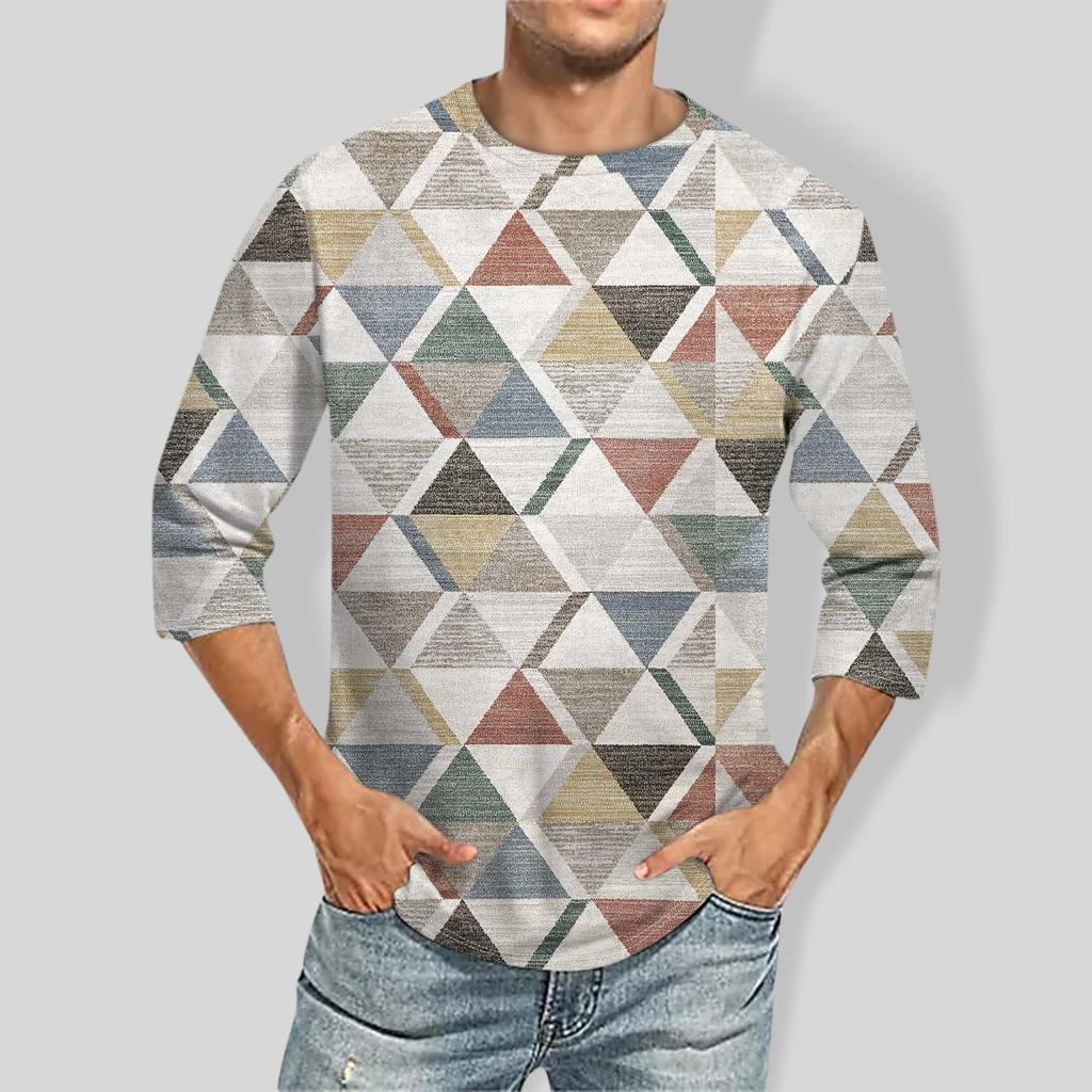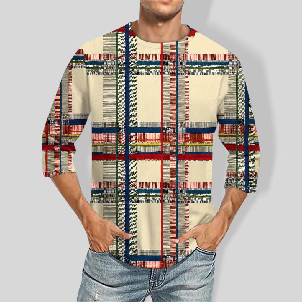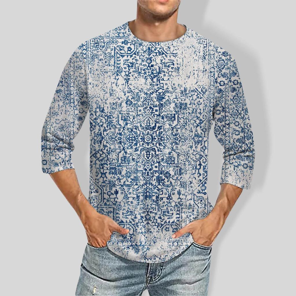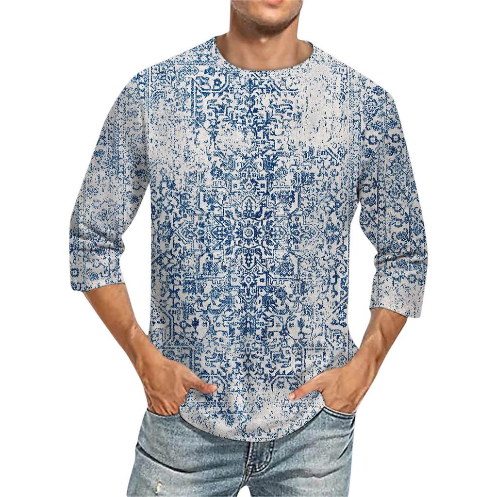 Мужская однотонная футболка с круглым вырезом и рукавами три четверти