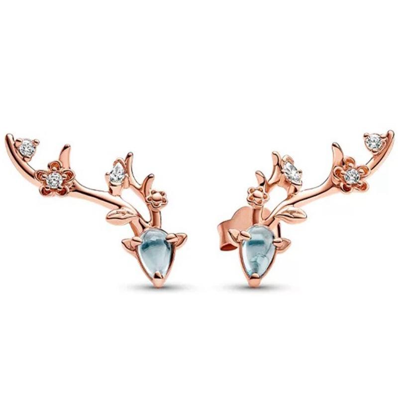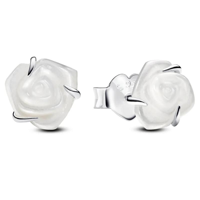 Подлинные серьги-гвоздики из стерлингового серебра 925 пробы с жемчугом и белой розой в цвету, из розового золота, с рогами оленя и кристаллами для женщин, модные ювелирные изделия