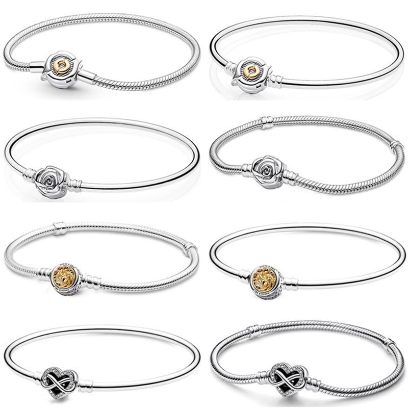 Оригинальные моменты Роза в цвету застежка змея цепочка браслет подходит для Европы браслет 925 стерлингового серебра бусина шарм Diy ювелирные изделия
