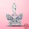 Подвески-шармы «Стрекоза» подходят для браслета, ожерелья, серебра 925 пробы, бабочки с фианитами, оригинальные бусины, подвески, изготовление ювелирных изделий своими руками