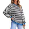 Повседневная толстовка с круглым вырезом и длинными рукавами в контрастную полоску, верхняя часть футболки