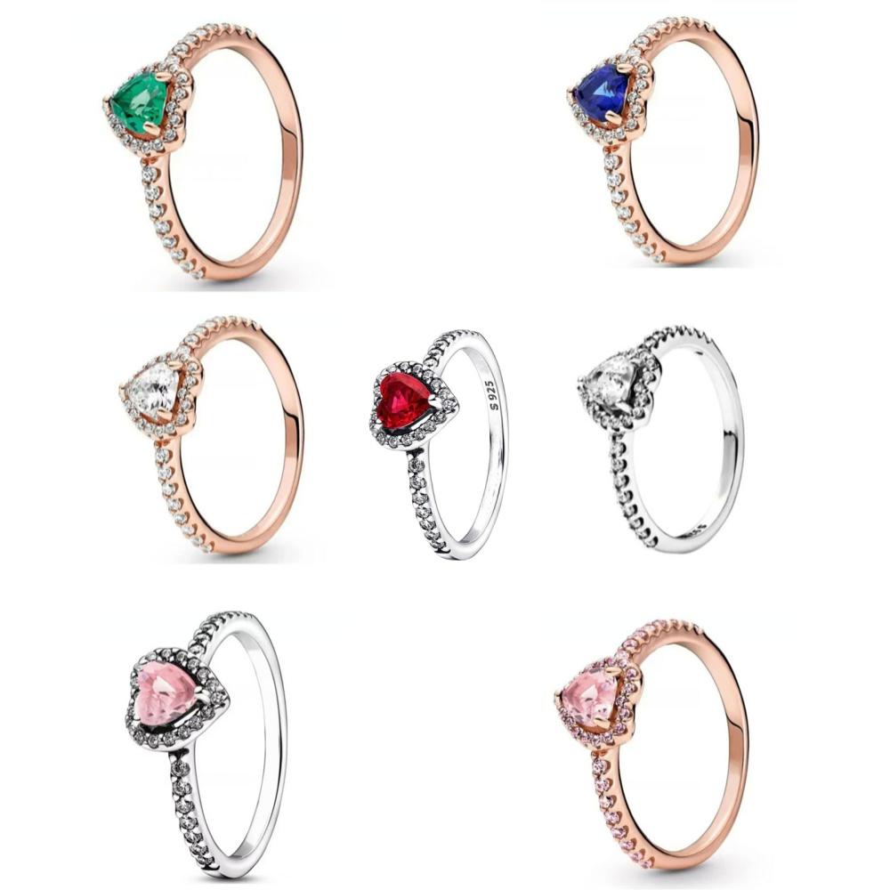 Кольцо из серебра 925 пробы с красным, розовым, белым, синим, зеленым сердцем, розовое золото, кольца для женщин с цирконом, оригинальный дизайн, искрящиеся кольца из циркония