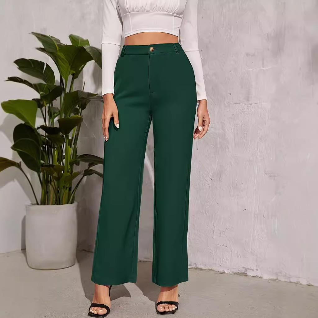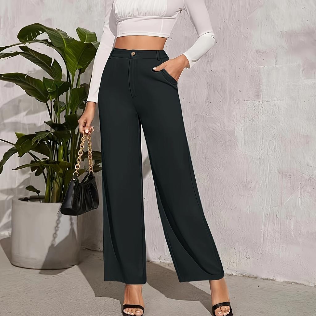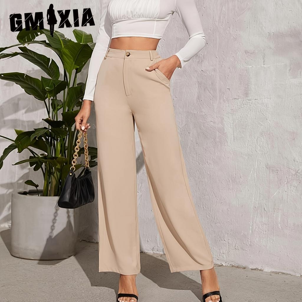 GMXIA Стиль Commuter Элегантные повседневные брюки с высокой талией и широкими штанинами прямого покроя