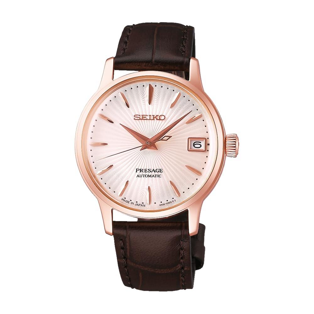 [Часы Seiko] Presage механические с бледно-розовым циферблатом и прозрачной завинчивающейся задней крышкой SRRY028 женские коричневые