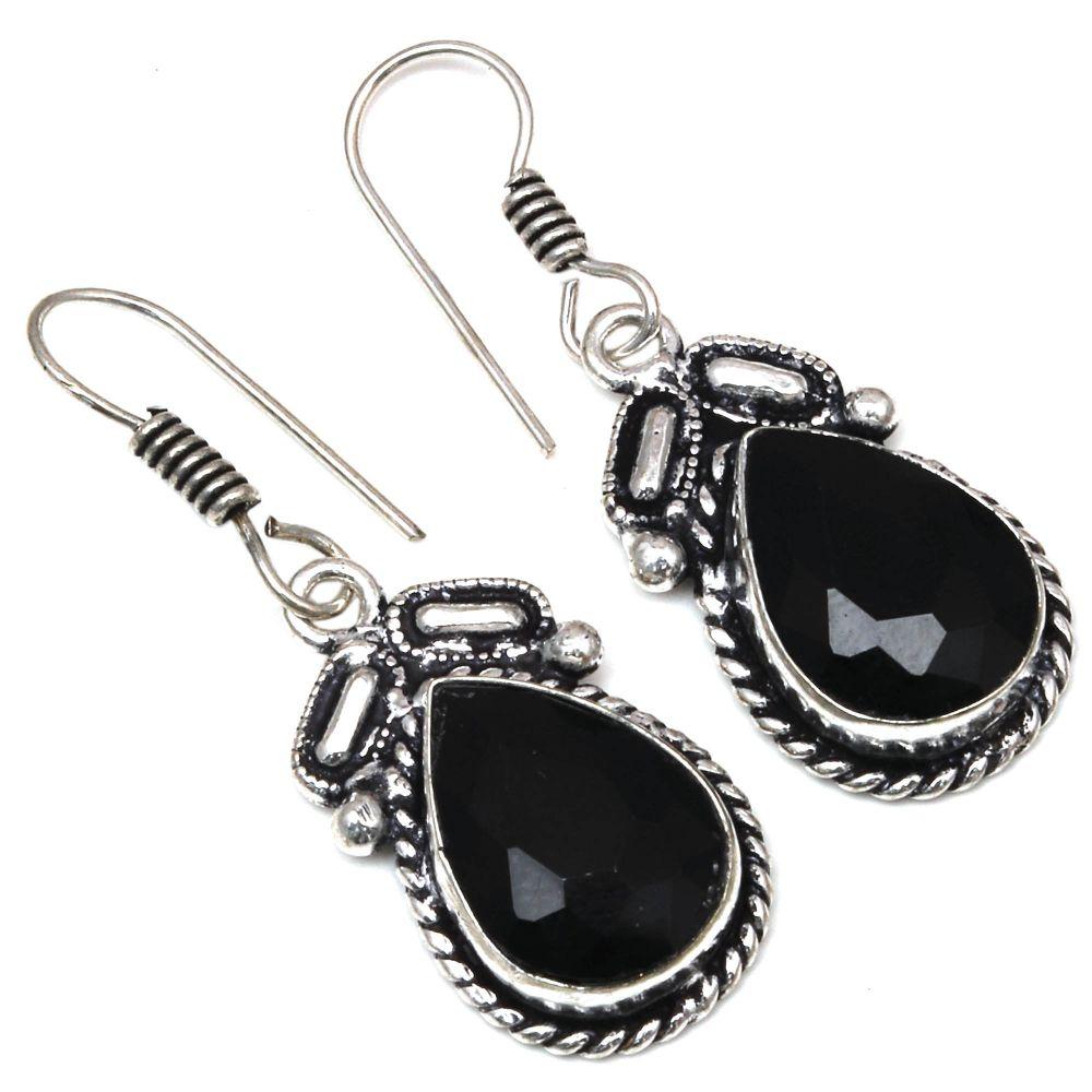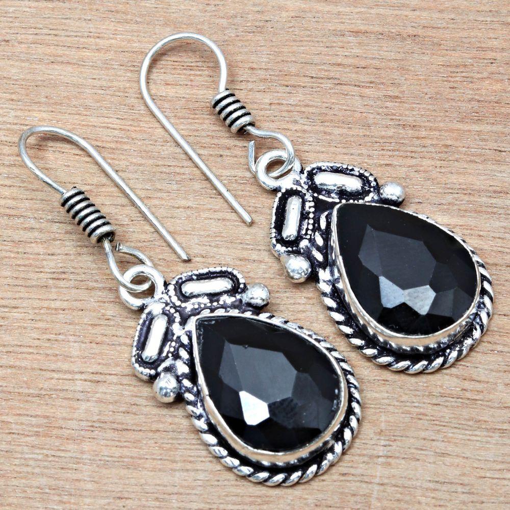 Черный Спинальный Драгоценный Камень Ручной Работы Подарок Для Нее Серебряные Ювелирные Изделия Серьги 1,5''