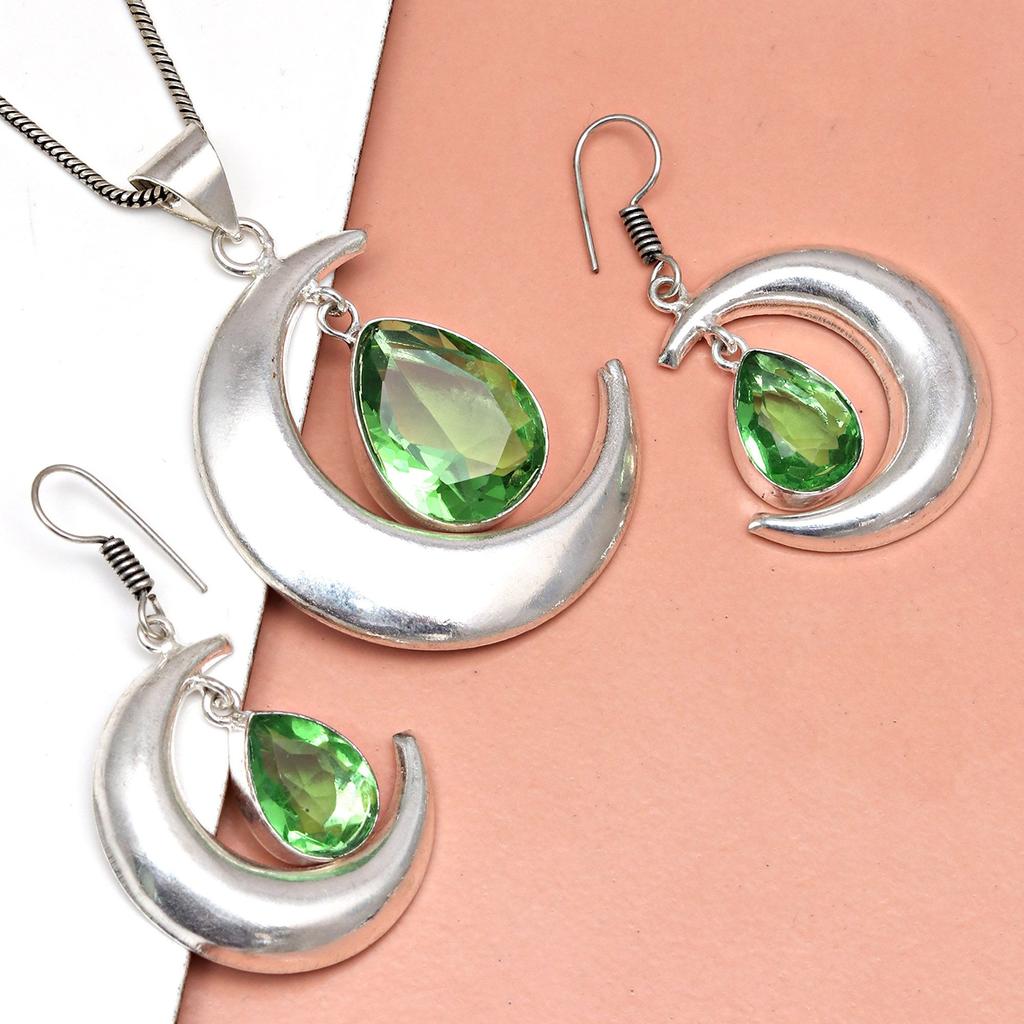 Комплект украшений с подвеской из драгоценного камня перидот и кварцевым ожерельем 18-20''