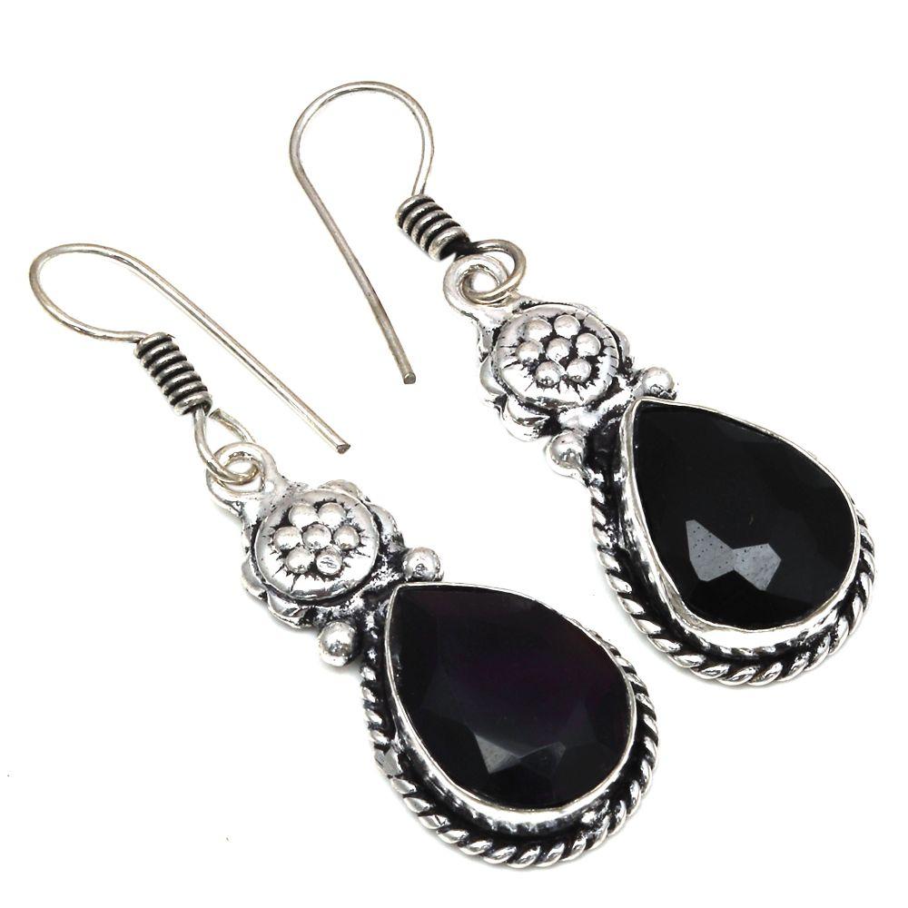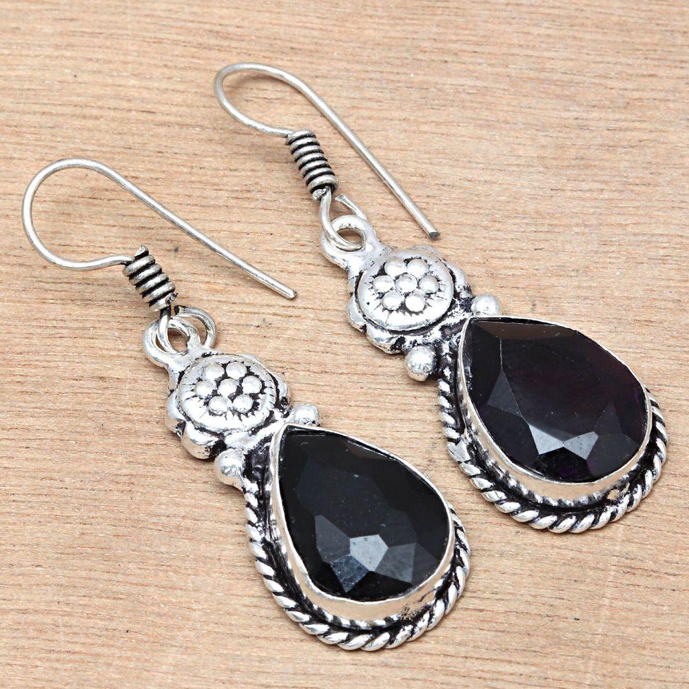 Черный Спинальный Драгоценный Камень Ручной Работы Подарок Для Нее Серебряные Ювелирные Изделия Серьги 1,5"