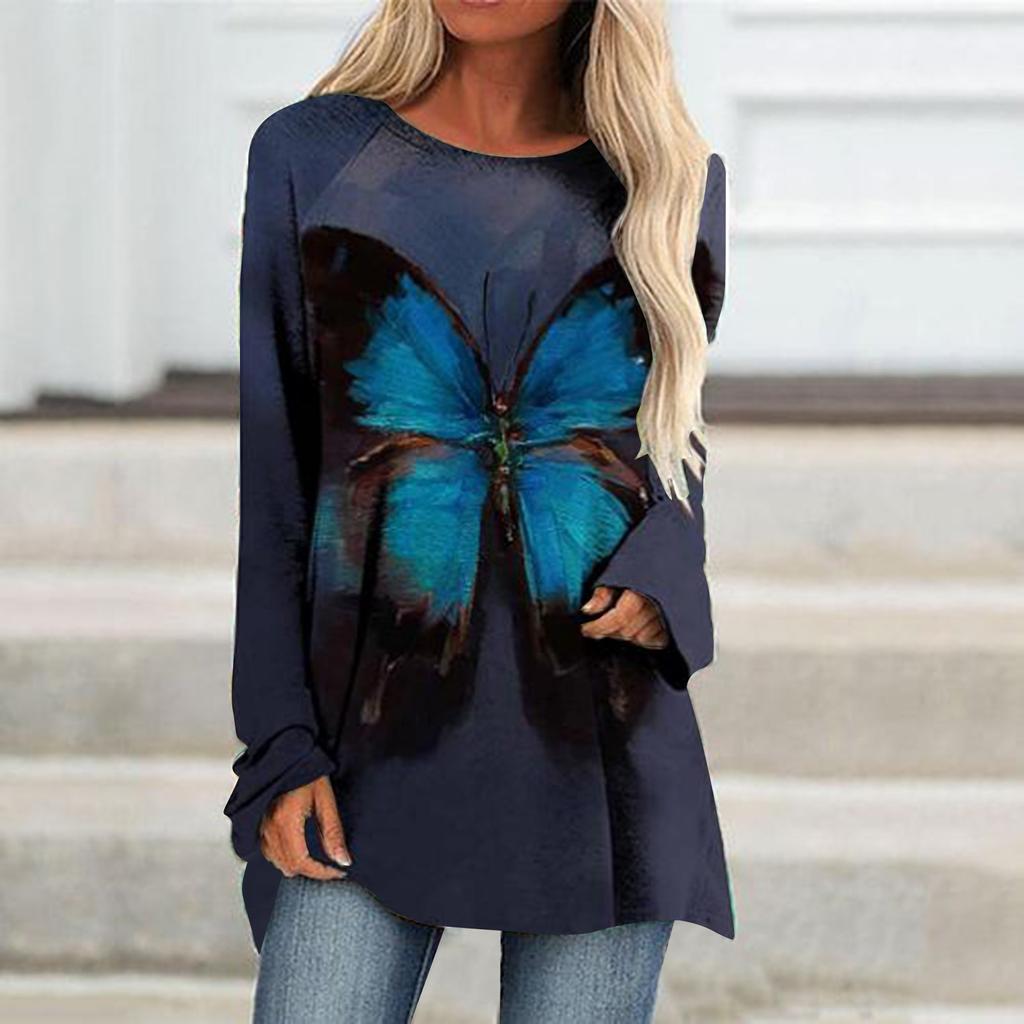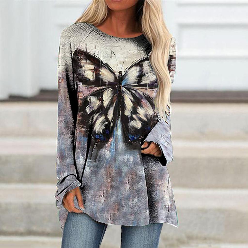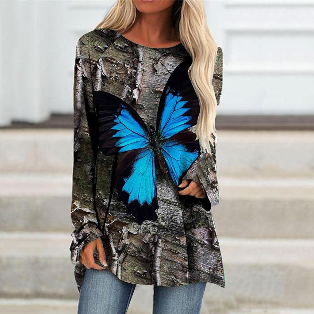 Женская футболка с длинным рукавом, осенне-зимний топ, одежда с 3d принтом бабочки, уличный тренд, женский топ, модная свободная футболка