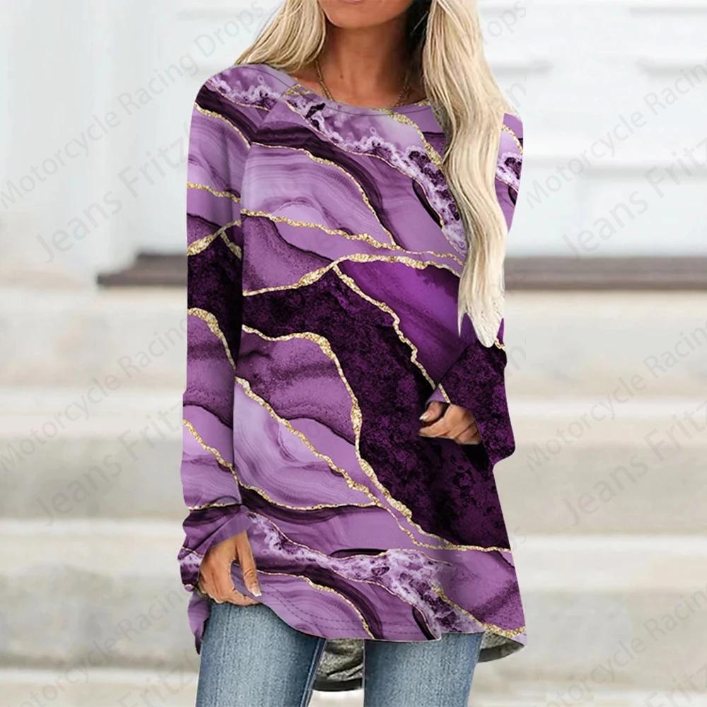 Футболки с длинным рукавом с принтом Marble 3D, женские модные футболки, женские топы, футболки, женские туники, топы, женская одежда, повседневные майки