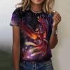 Летняя женская футболка с модным узором «Феникс», топ с короткими рукавами, свободный топ с круглым вырезом, женская футболка для вечеринок
