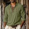 Мужская льняная рубашка большого размера с завязками для дома, повседневная модная рубашка с v-образным вырезом и длинными рукавами