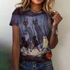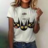 Женская футболка, летняя, с круглым вырезом, коротким рукавом, с рисунком кошки, топ, костюм на Хэллоуин, модная, свободная, с коротким рукавом, женская футболка 2024