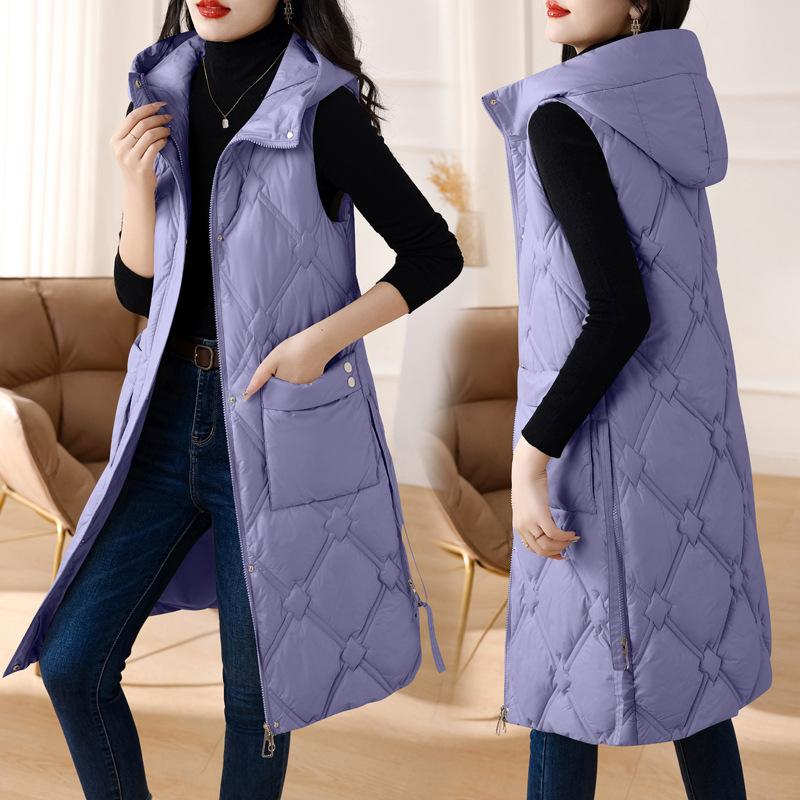 Женский зимний утолщенный теплый удобный жилет длиной до колена без рукавов