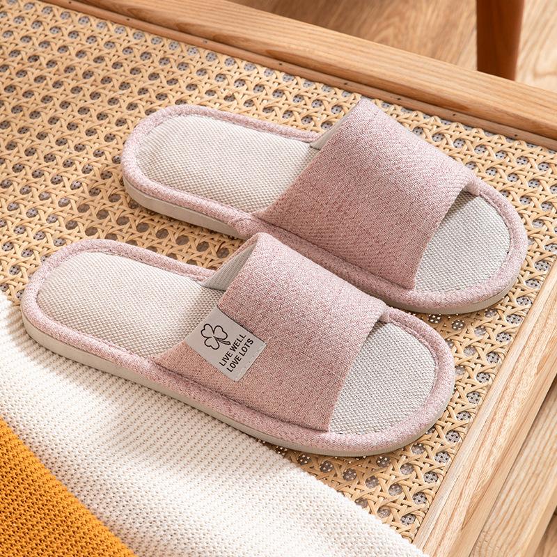 Домашние льняные тапочки для мужчин на весну и осень Удобные тапочки для спальни с открытым носком и дышащие тапочки Мужская и женская обувь Лето