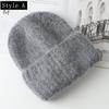 Konijnenbont Zachte Warme Beanie Muts Voor Vrouwen Wol Motorkap Dikke Gebreide Mooie Skullies Mutsen Ангорская вязаная шапка