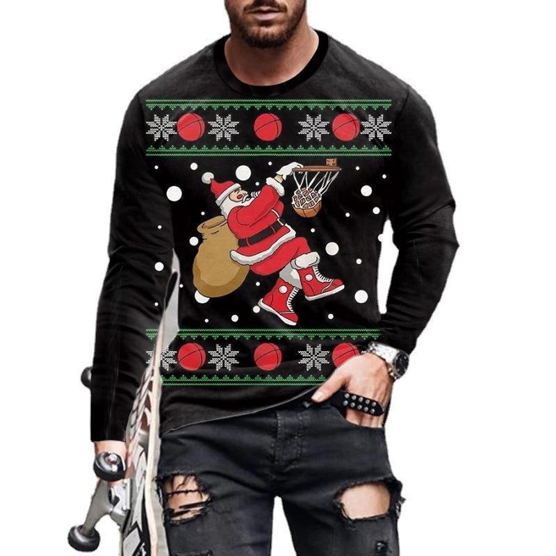 Осенняя футболка, новая мужская футболка с длинным рукавом и цифровым принтом, свободная толстовка с круглым вырезом и рождественским принтом, 3D футболка