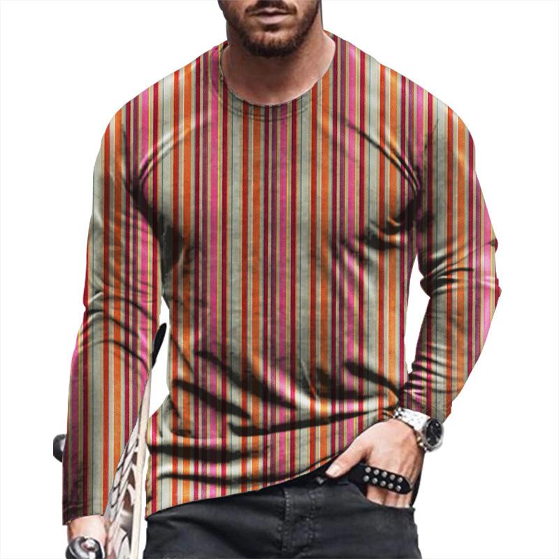 Футболка осенняя мужская с короткими рукавами и цифровым принтом, топ с длинными рукавами и круглым вырезом, свободная спортивная толстовка с 3D принтом