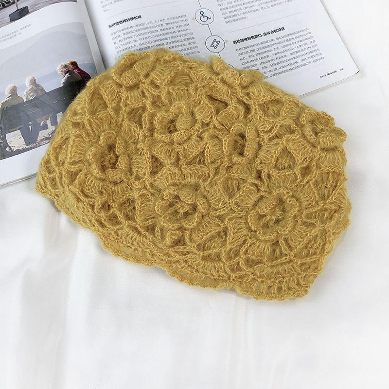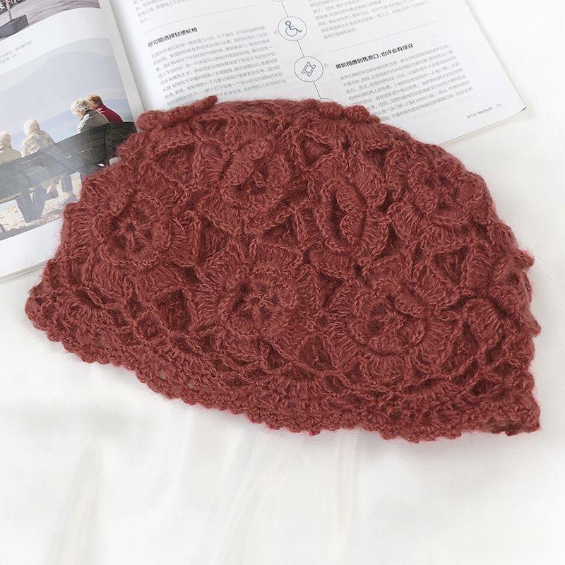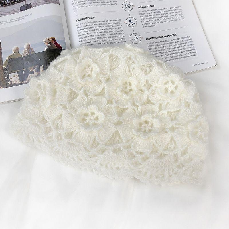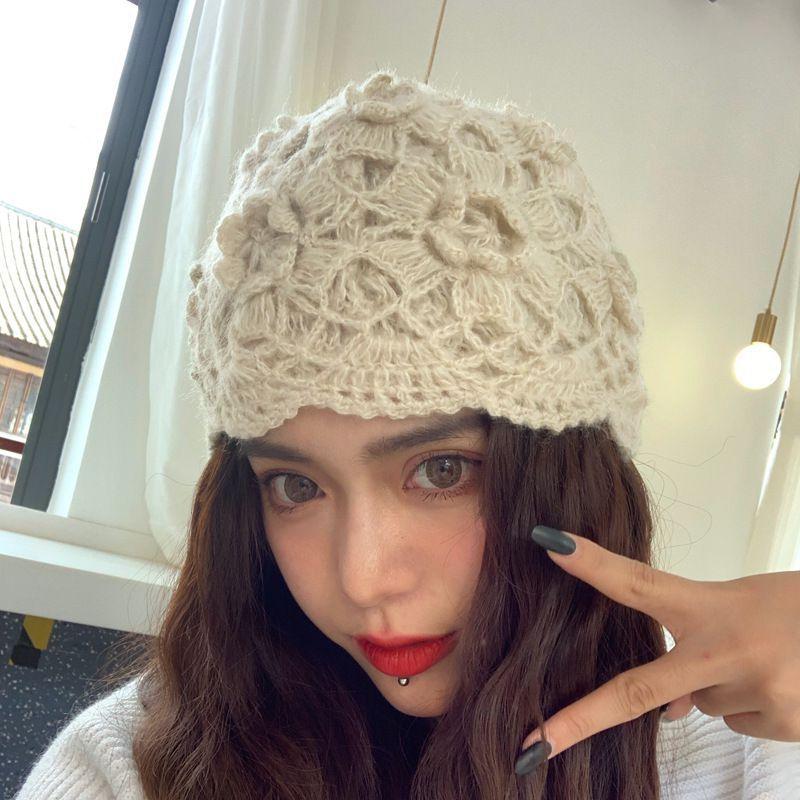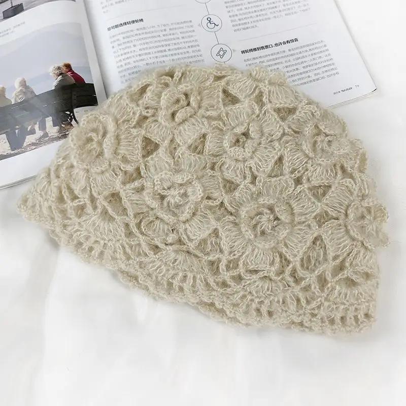Вязаный крючком цветочный берет ручной работы осень-зима корейская версия модная милая и симпатичная вязаная шапка-тазик, повседневная и теплая шерстяная шапка