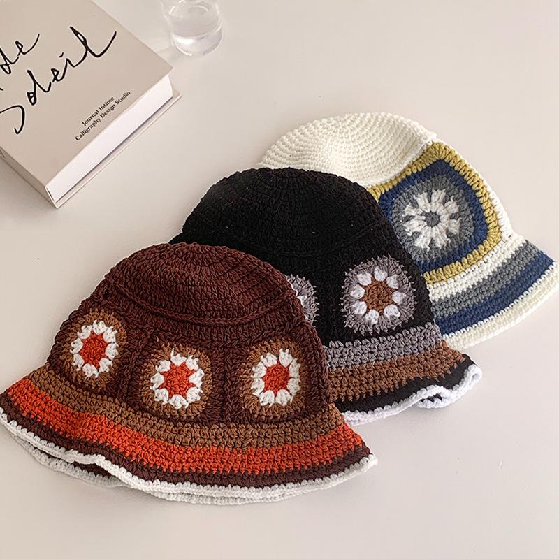 Японская ретро-подсолнуховая милая вязаная шапка-тазик для женщин, дышащая и универсальная солнцезащитная шапка для весны и лета