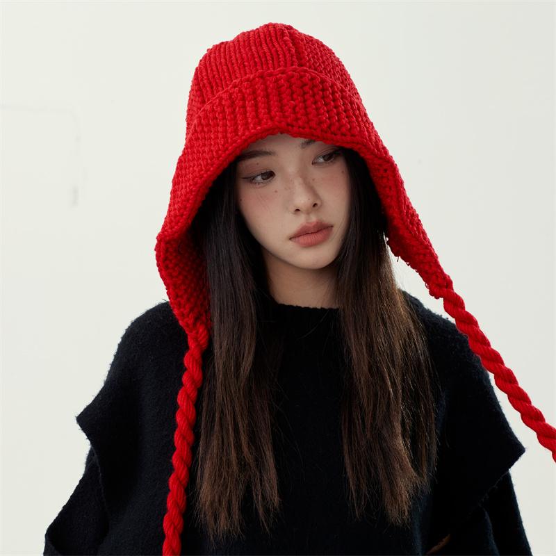 2024 Красная шапка-бомбер, зимняя теплая, симпатичная, плетеная, плетеная, вязаная, корейская, модная, женская, лыжная шапка Gorros